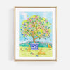 Painted in bright greens and blues with accents of red and yellow, this art print will brighten any child's room, playroom or preschool classroom.
