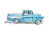 Add a little pop of color and charm to your farmhouse decor with this turquoise truck with pumpkins.