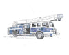 Blue Gray Vintage Fire Truck Wall Art Print – Watercolor Firefighter Nursery Decor