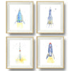 Navy and Red Space Ship Watercolor Print for Kids' Rooms