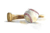 This baseball art print features a baseball with the lower portion of a bat which is angled on a diagonal behind it. This wall art was created for kids' rooms and is part of a collection of several prints featuring baseballs, bats and mitts.