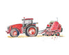 Red Tractor Baling Hay Watercolor Print – Rustic Farm Nursery Art