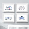 Delight a little boy with this light blue train print from my original watercolor. Pale blue, white and gritty pencil texture enhance this vintage steam engine and will complement your baby or toddler's bedroom decor. Customize your own set by choosing a railcar and caboose to coordinate.