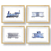 Bring a burst of imagination and creativity to any room with the navy blue train print. Featuring a whimsical watercolor with gritty pencil texture, this wall art will bring color and life to your baby or toddler boy's room.