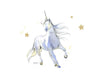 Escape to a place where dreams come true and magic is real with a unicorn art print in soft purple. Painted in watery washes of lavender with splashes of gold stars, it's sure to delight the youngest unicorn lover.